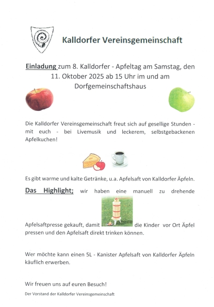 Der Flyer zum 11.10.2025 8.Kalldorf – Apfeltag