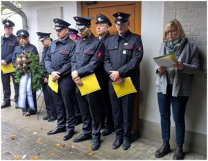 Die Namen der gefallenen Männer auf den Gedenktafeln seien ein Sinnbild für eine Vergangenheit, die Verpflichtung für die Gegenwart und Zukunft bedeute. Der Volkstrauertag, so betonte sie, sei heute wichtiger den je: „In Zeiten, in denen Toleranz und Menschlichkeit rasant an Bedeutung verlieren, müssen wir uns bewusst machen, dass Krieg niemals eine Lösung sein darf.